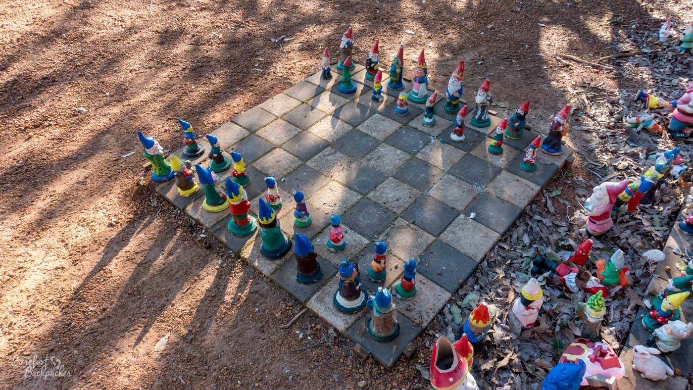 A chessboard of gnomes.