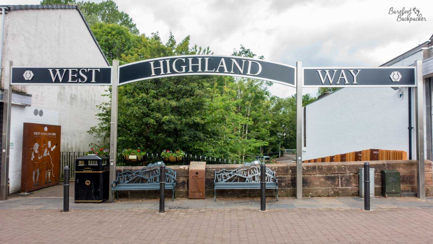 If going northbound, it starts in the incorrectly-spelt town of Milngavie, and ends in Fort William, at one end of the Great Glen that geologically splits Scotland apart. Milngavie is a town in Dunbartonshire but is effectively a Glasgow suburb, making it a really easy place to get to and start from. Indeed, the start of the West Highland Way itself is literally on the High Street, and very close to a large supermarket.