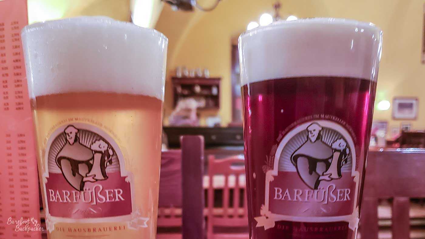 Two of the beers from Barfusser brewery, Nuremberg.