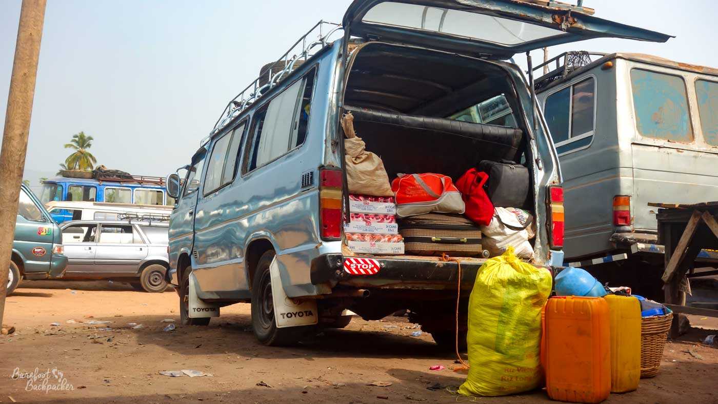 Share-taxi in Benin, in the luggage-loading phase. This took half an hour, as you’d imagine.
