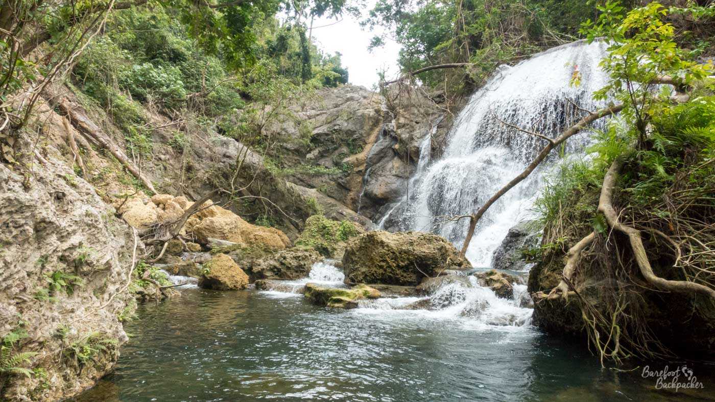 Although along the trail the water passed through several cascades which are quite pretty, it’s the waterfall at the end that people go to see. It’s slightly around a bend in the river which means again either wading through a quite deep natural pool, or clambering over coral and rocks to see properly. In front of the falls is a good pool for swimming in; I didn’t partake, obviously, but my guide did. I just sat on a tree root, dipped my feet in the cool pool, and reflected on nature. It was a similar experience to the ones I’d visited at the end of my trip to Togo and Ghana a few years back, but I think this walk was better than either.