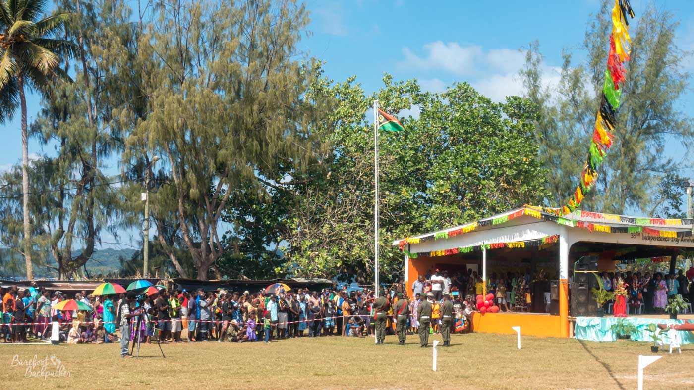 The highlight of the morning was the flag-raising ceremony; a small squad marched very slowly and in perfect step to the stage, picked up the flag, and carried it in exaggerated ornate military step to the flagpole. To the sound of what I assume was the Vanuatan national anthem (it’s not something I get to hear very often, in fairness), the flag was raised and nobody stood up especially for it.